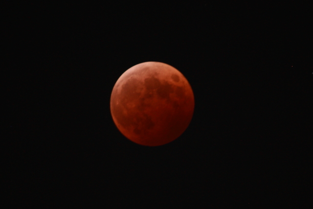 さまざまな条件が重なり月食となり、しかも、月のすべてが本影に入り込む「皆既月食」となる。